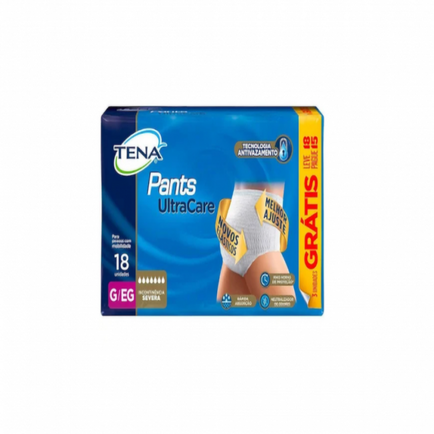 Roupa Íntima Descartável UltraCare Unissex Tena - P/M G/EX 18 UN
