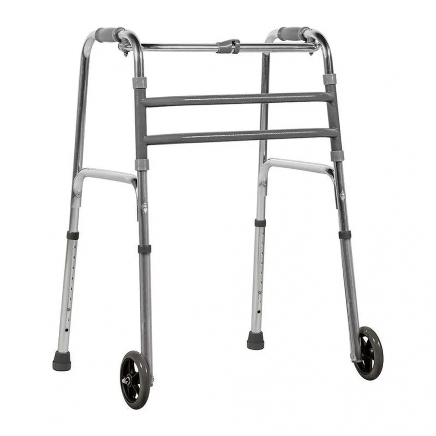 Andador Fixo Prata Dobrável com Rodas - Mercur