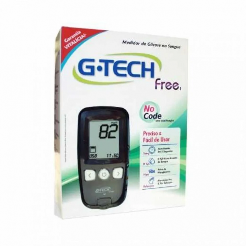 Kit Medidor de Glicose G-Tech Free c/ 10 Tiras + 10 Lancetas + 1 Lancetador